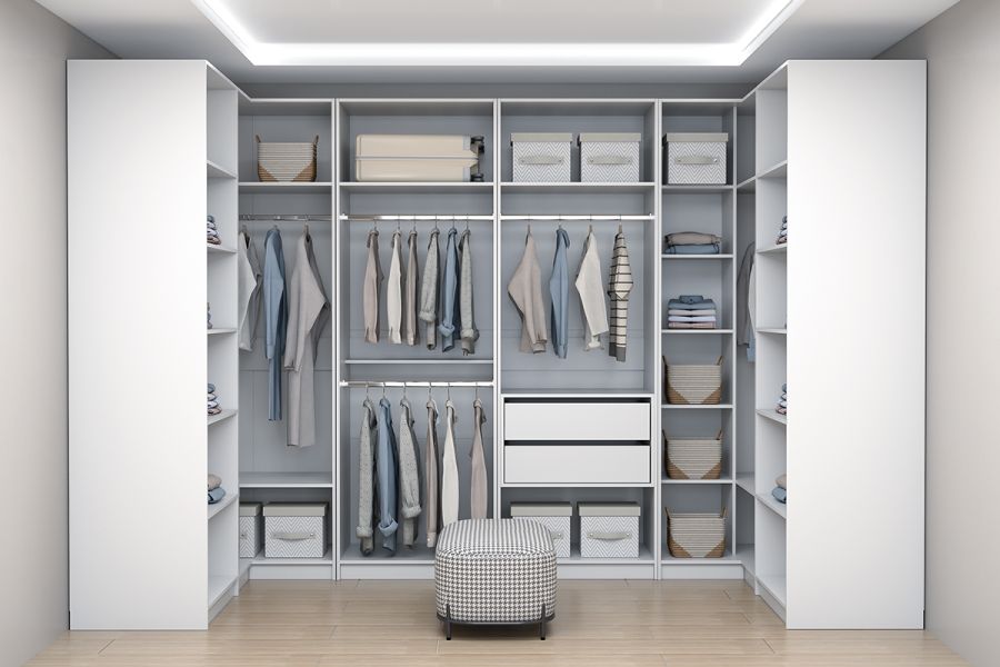 Модульная серия Иннэс - 7 - настоящая находка для грамотного и организованного хранения одежды, обуви и различных аксессуаров. Габариты: 1800^3600^1800х2400х584 мм. Материал/цвет: ЛДСП (Белый).