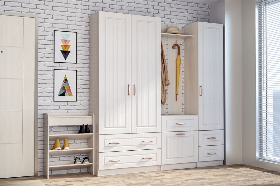 Габариты: 1950х2100х390 мм (без учёта размеров открытой обувницы 600).