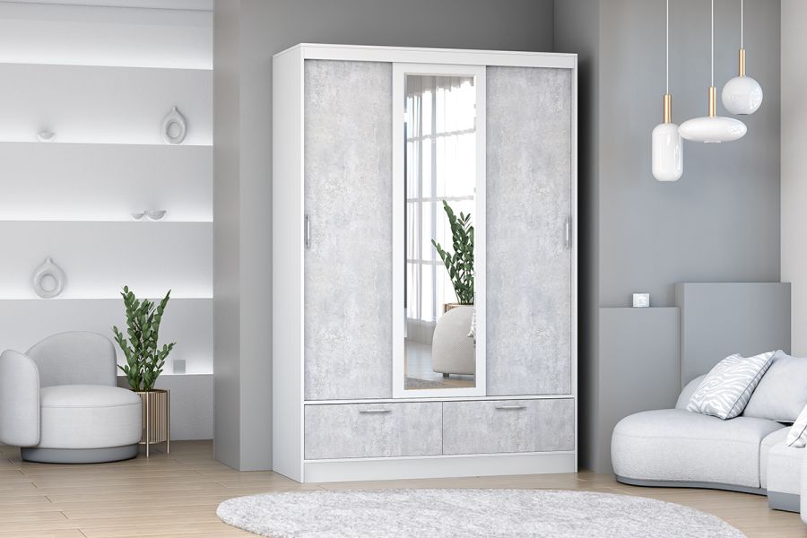 Материал/цвет: короб - ЛДСП (Белый), фасад - ЛДСП (Цемент светлый); ручки - пластик (Металлик).