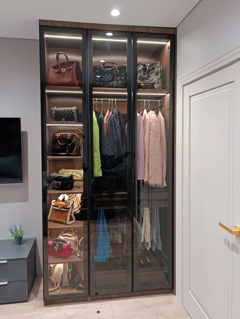 Шкаф со стеклянными фасадами и функциональным наполнением