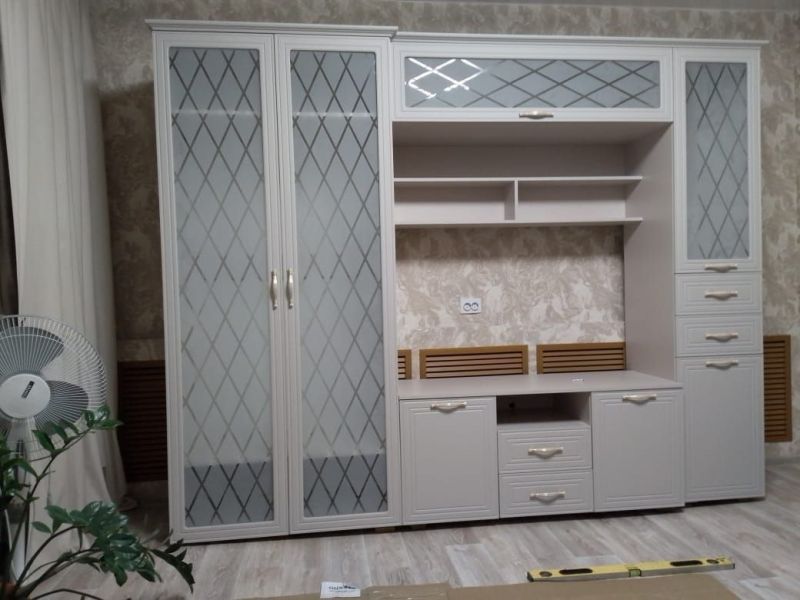 Размер: 2800×2220×500(вставка стекло)/Пескоструй ... легка для восприятия, а значит, она не утяжелит своим присутствием интерьер. Её красивое исполнение украсит любую другую гостиную и наполнит её настоящим уютом.