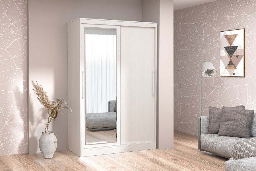 Система раздвижных дверей сохранит пространство, а зеркальный фасад визуально расширит его.