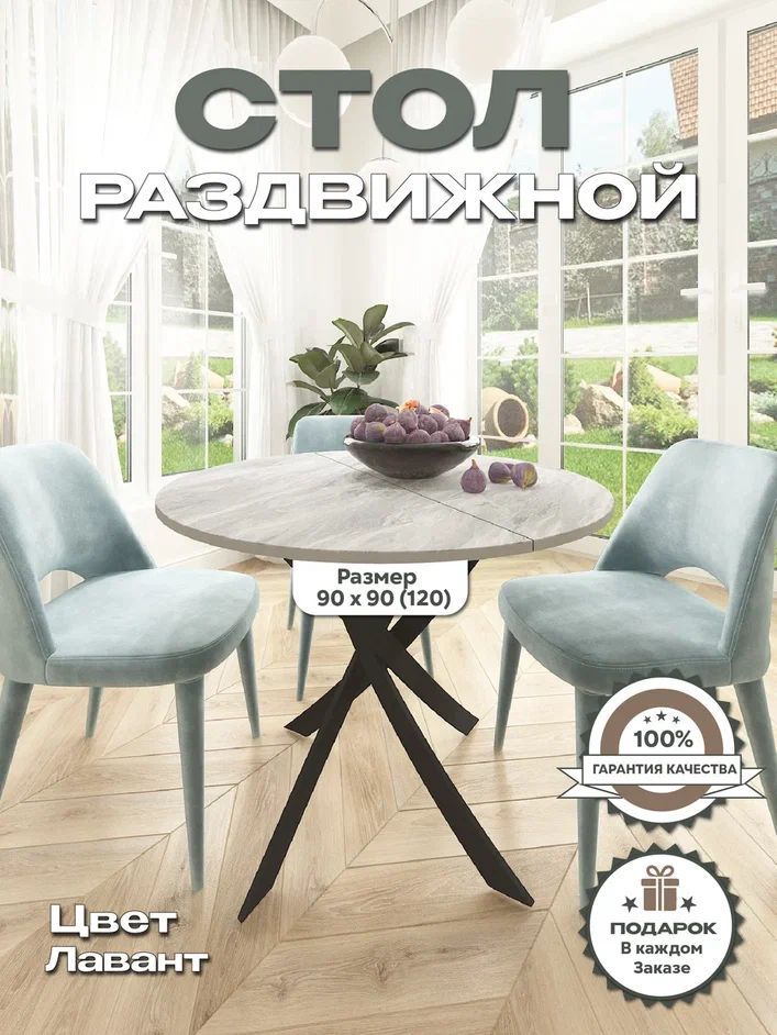 Стол Веста 90*90(120) декоре лавант на черном подстолье