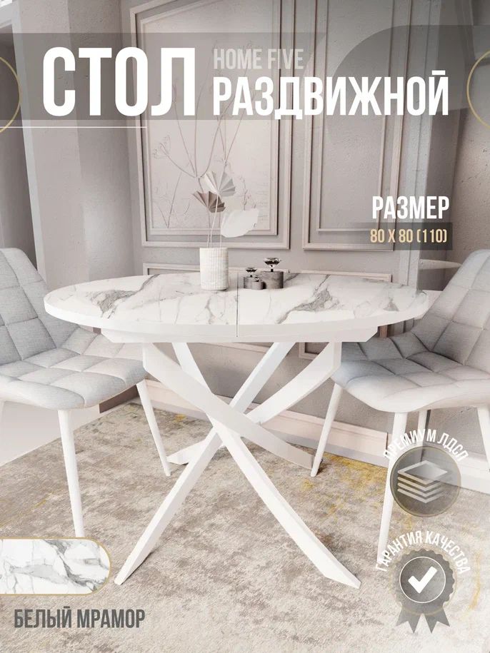 Стол Юпитер 80*80(110) белый мрамор