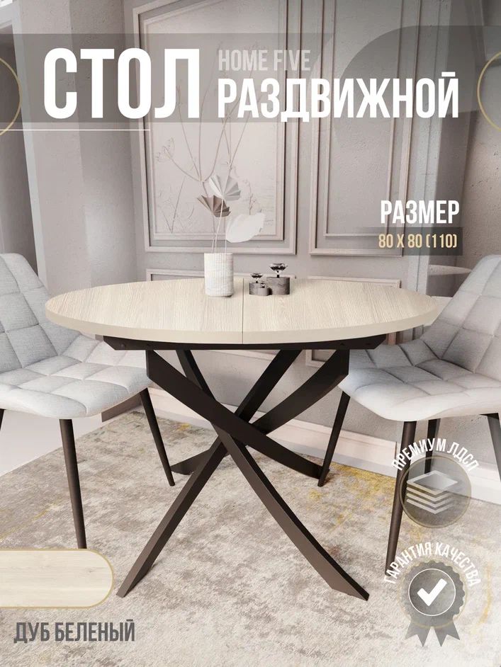 Стол Юпитер 80*80(110) дуб беленный