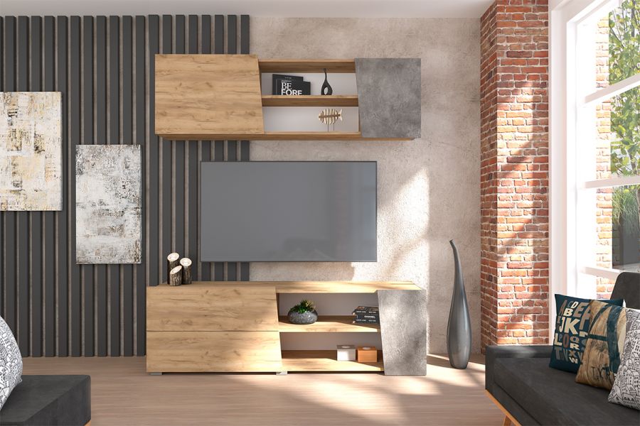 тумба под ТВ с двумя выдвижными ящиками и нишами, 1500х478х420 мм;