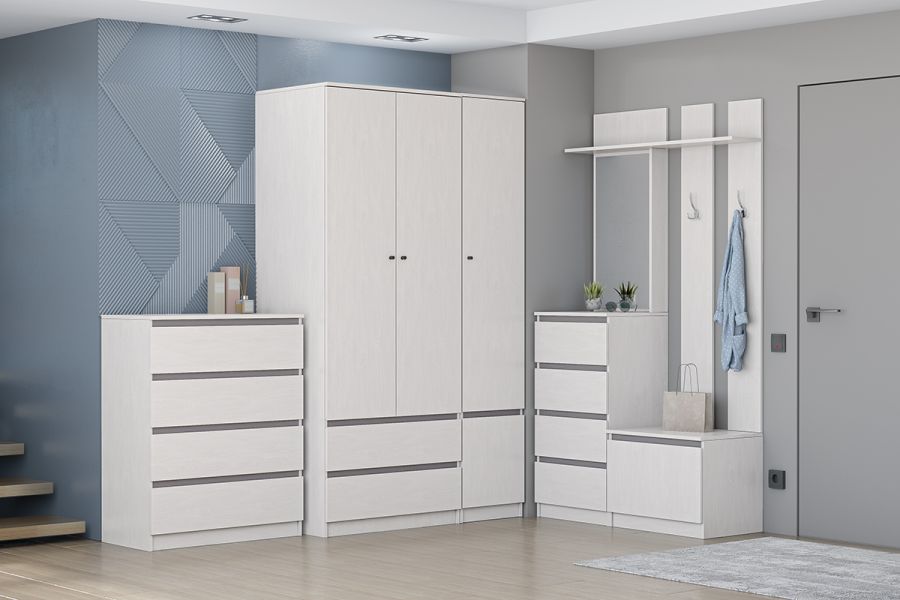 Прихожая в светлых оттенках "Кэт - 1" создаёт ощущение уюта и комфорта. В ней много света, воздуха и ничего лишнего.