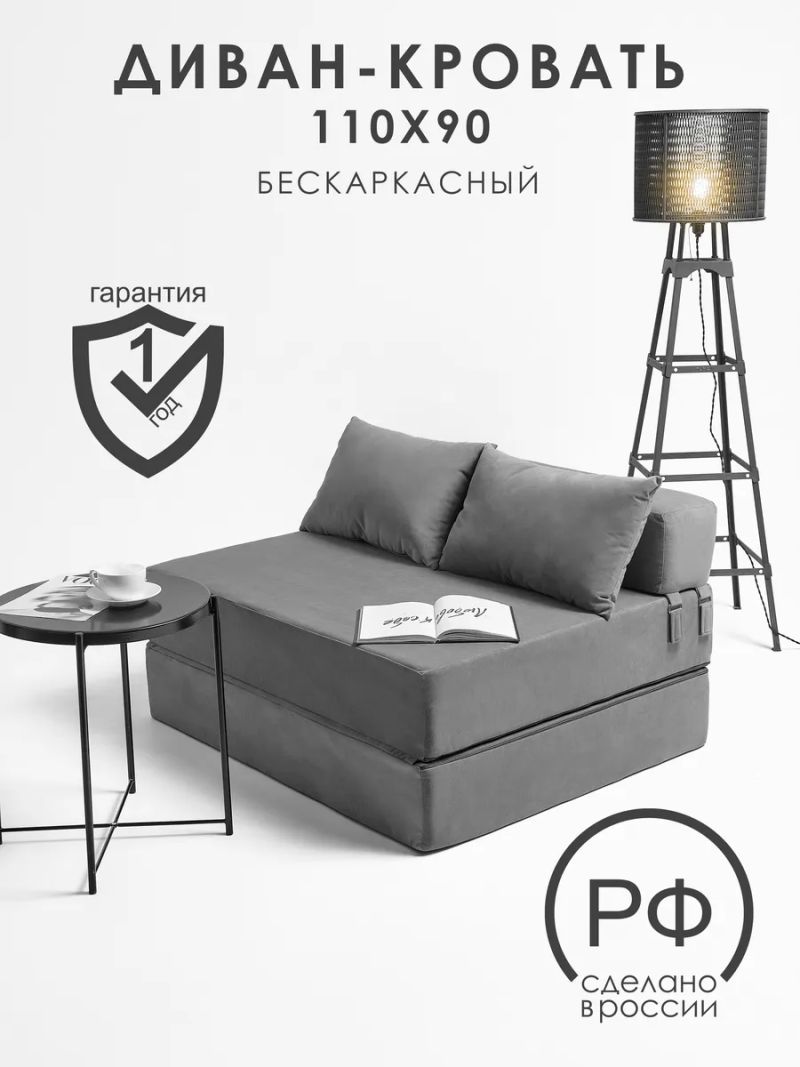Бескаркасное кресло. Диван-кровать Ultra Grey (велюр)