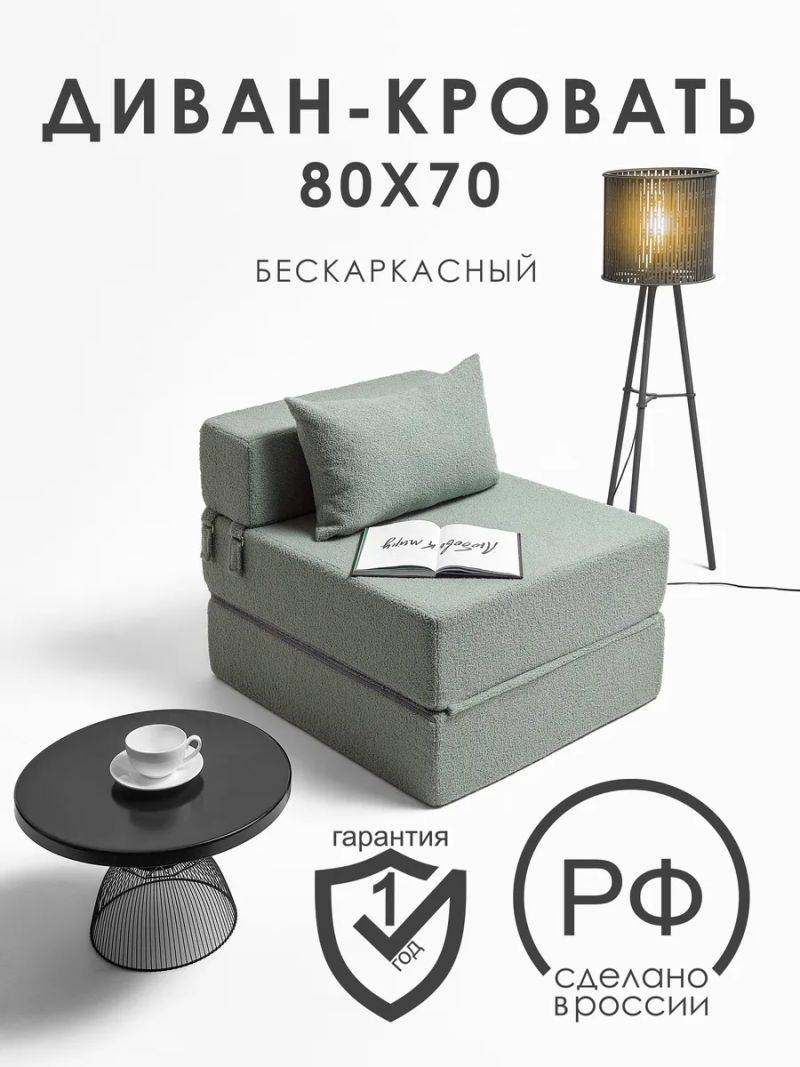 Бескаркасный диван-кровать 70х80 букле (Bravo Wasabi)