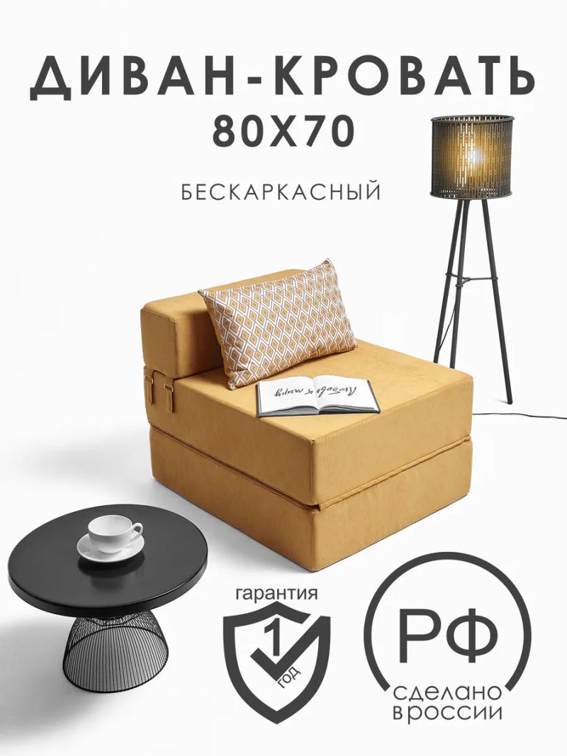 Бескаркасный диван-кровать 70х80 велюр с принтом (Ultra Mustard)