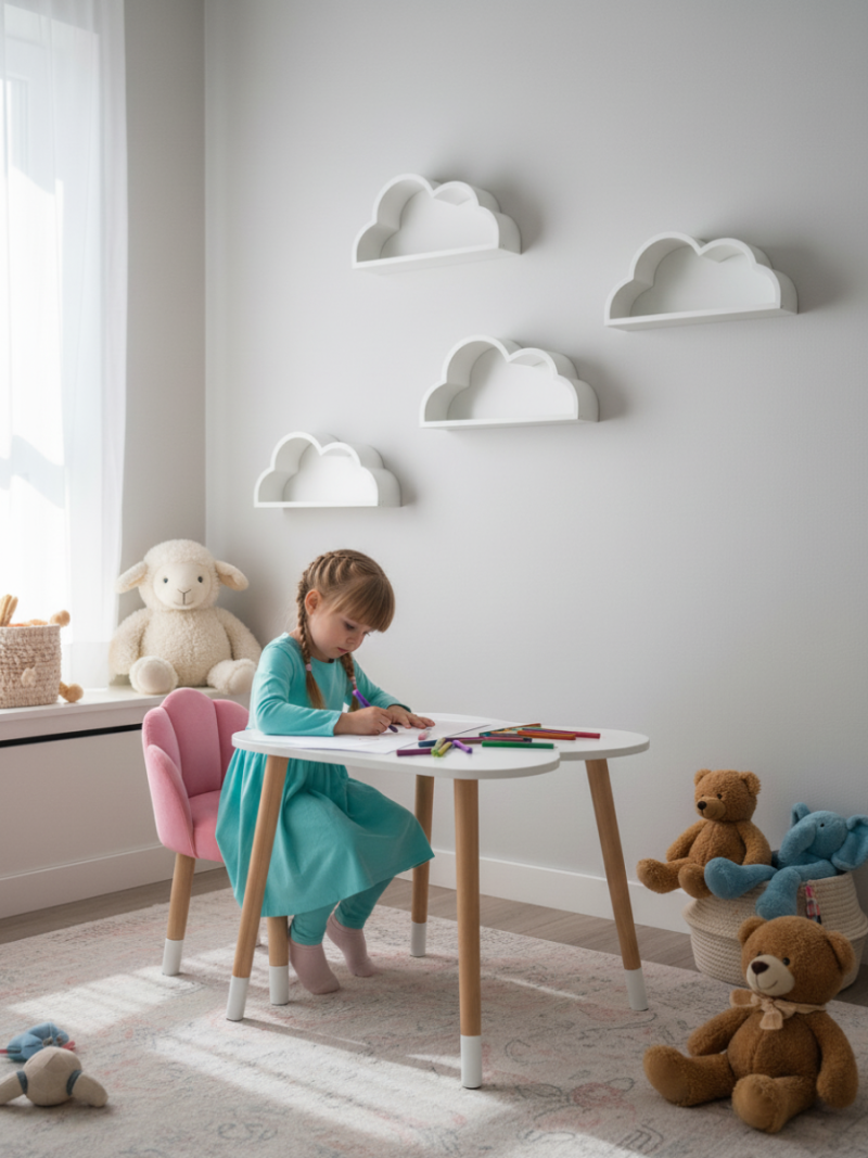 Детский стол изготовлен из натурального массива березы, МДФ класса Е1, окрашен Акриловой эмалью.